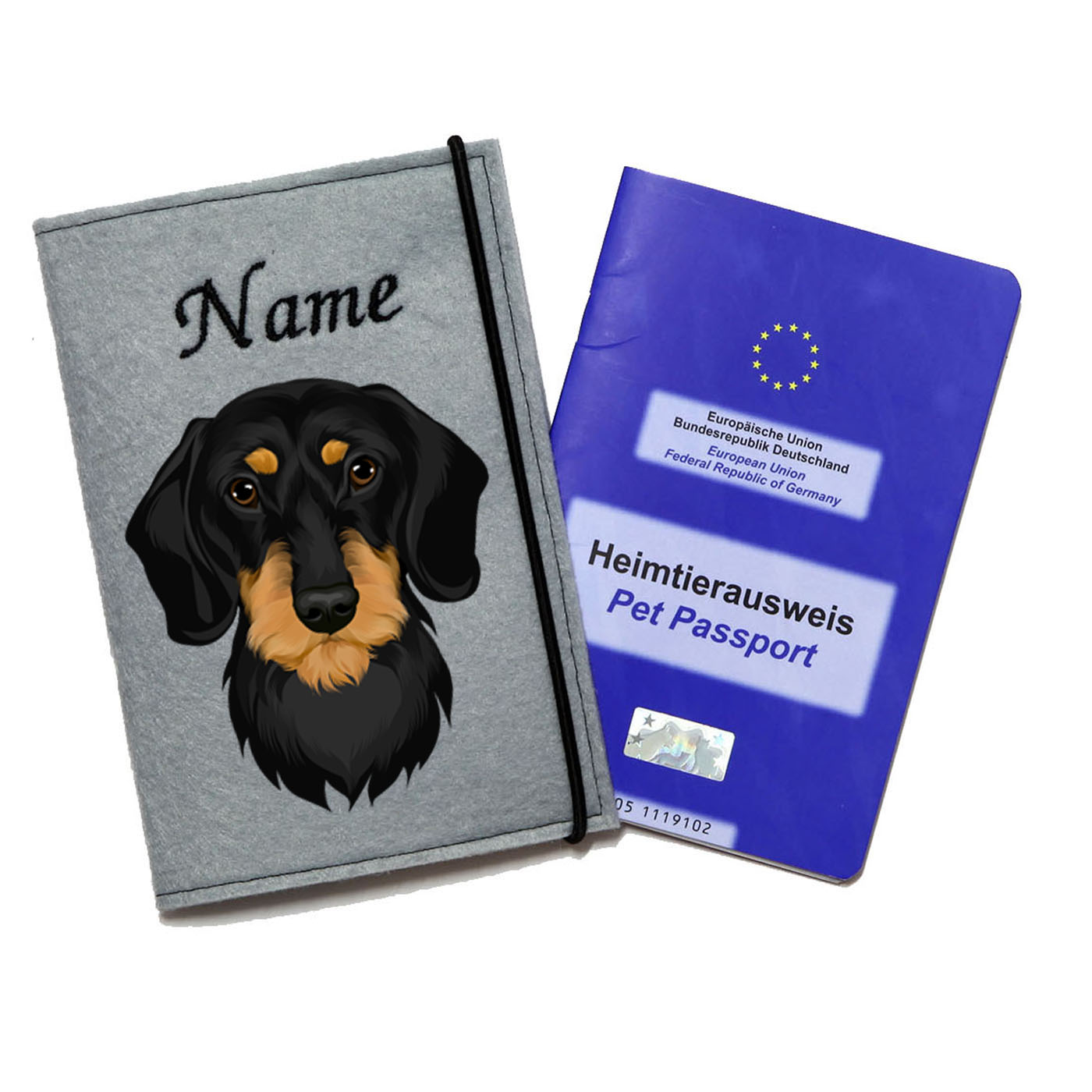 Impfpasshülle für den Rauhaardackel schwarz tan
